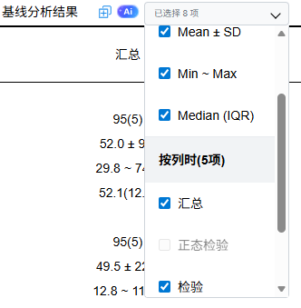 SPSSAU进行基线分析时,针对定量数据,暂未考虑方差齐事项,仅关注正态性检验来判断检验类型。针对定类数据,SPSSAU默认是提供Pearson卡方检验。